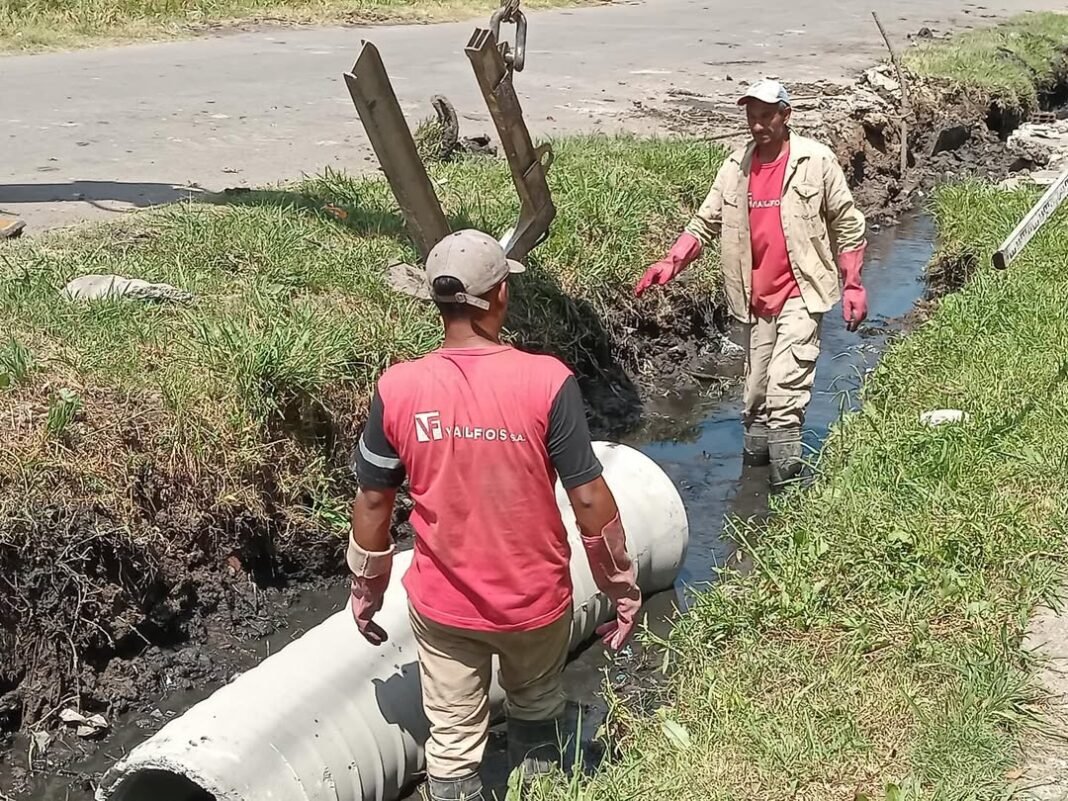 En ese marco, se avanzó con tareas de zanjeo y colocación de cañería en las calles Arzulea y Punta Alta, mientras que actualmente los trabajos se concentran sobre la calle Miramar. Las intervenciones forman parte de un plan de fortalecimiento de la infraestructura hidráulica en distintos puntos del distrito.