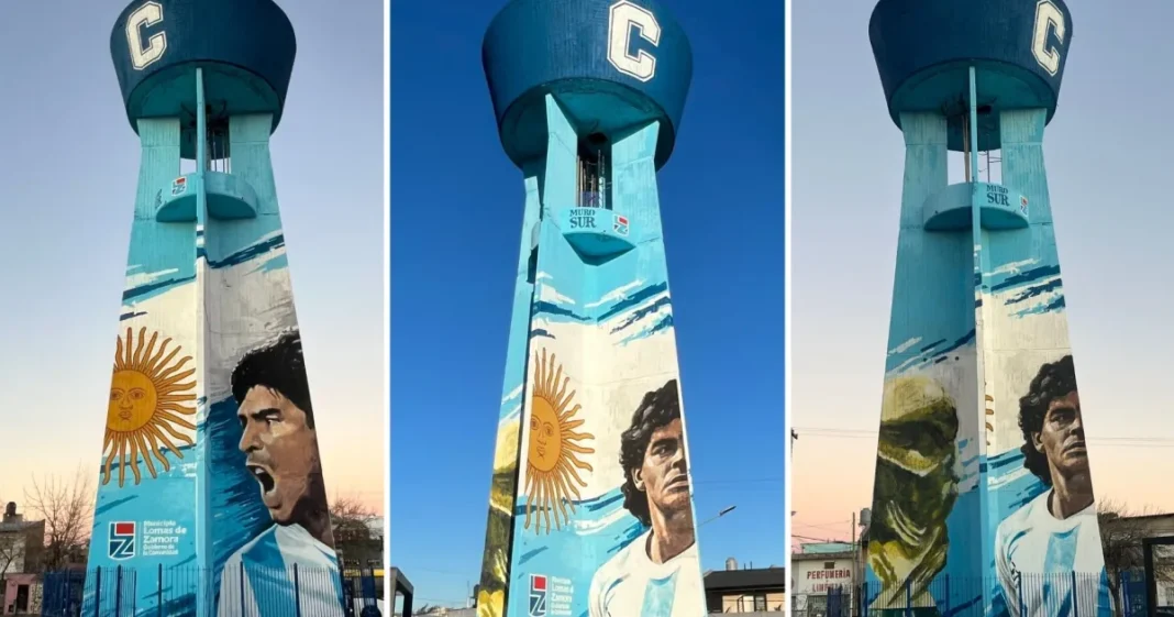 El barrio de Santa Marta cuenta con un nuevo homenaje a Diego Armando Maradona, esta vez en el tanque de agua de la plaza central. El colectivo artístico Muro Sur llevó adelante la intervención sobre la estructura de 24 metros de altura, transformándola en una obra imponente que retrata al ídolo con la camiseta de la Selección Argentina, la cinta de capitán y la Copa del Mundo obtenida en México 1986.